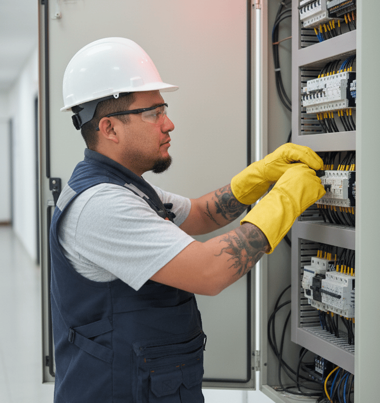Nuestros electricistas certificados realizan un mantenimiento preventivo y auditorías detalladas de tableros eléctricos en Santiago (comunas específicas como Providencia o Las Condes). Aseguramos que tus instalaciones cumplan la normativa SEC y funcionen de forma óptima, previniendo fallas y garantizando la seguridad de tu hogar o negocio.